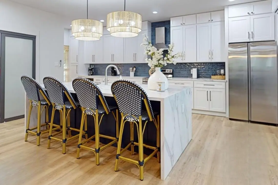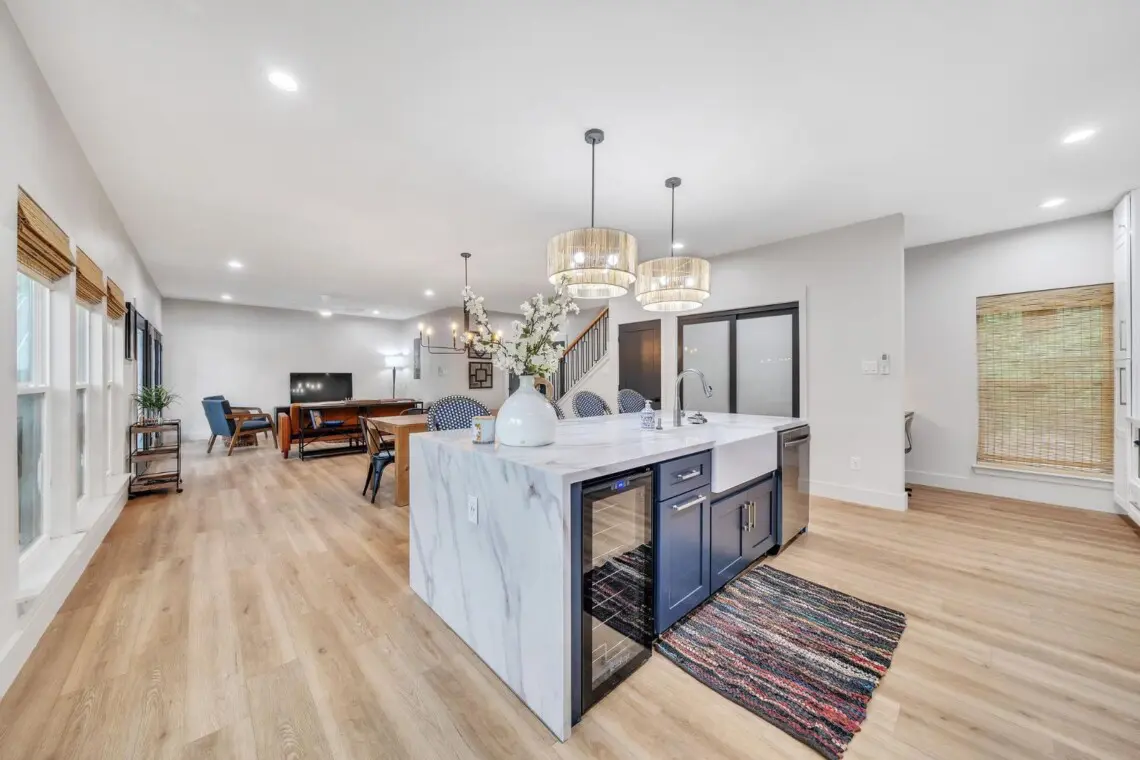 Designer Kitchen: Fully equipped with high-end appliances and sleek finishes, perfect for morning coffee or a group brunch.
